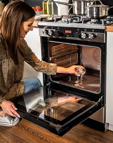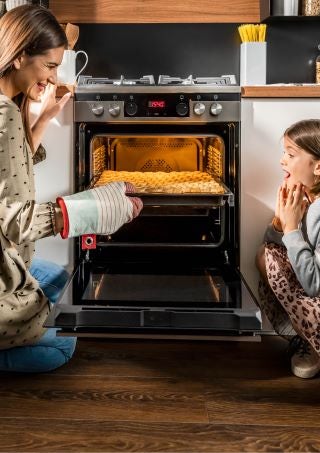Das überarbeitete Ofendesign sorgt für eine perfekt gleichmäßige Wärmeverteilung im gesamten Ofen. Sie können jetzt eine große Anzahl von Gebäck gleichzeitig backen und sicher sein, dass alles gleichmäßig gebacken wird. Dieser großvolumige Ofen kann über 100 Muffins gleichzeitig backen. Sie können auch leicht Pilze und Obst trocknen oder auf vielen Ofenebenen gleichzeitig backen.